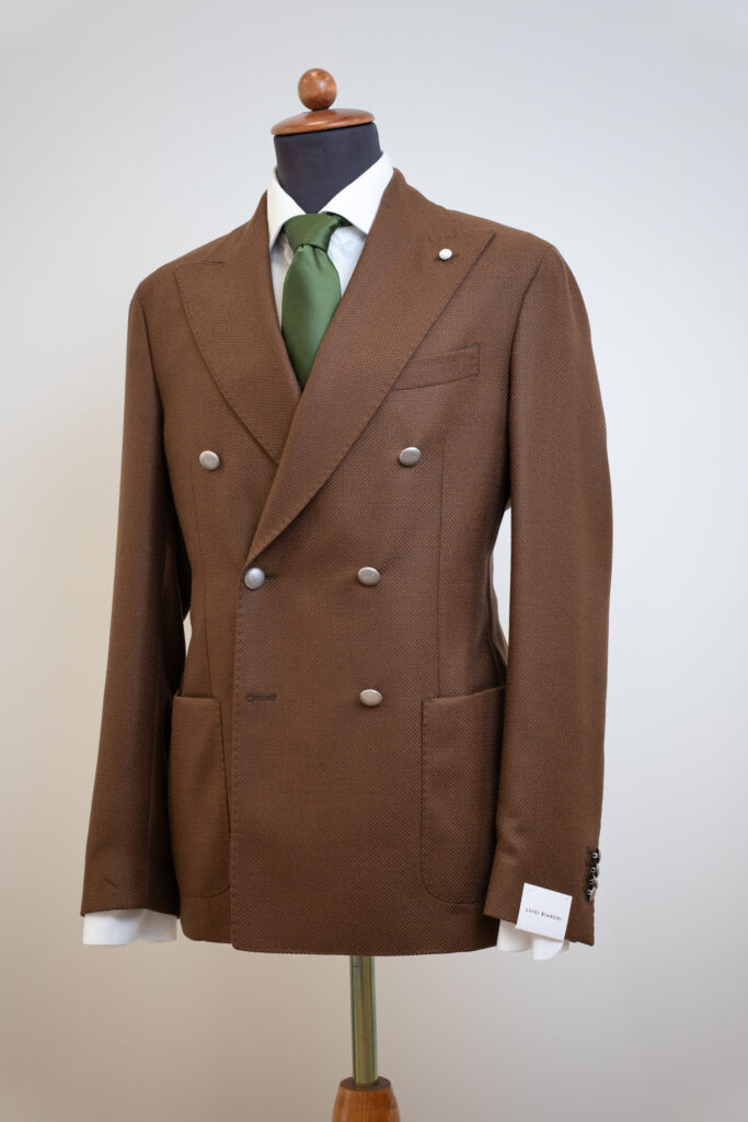 Giacca Luigi Bianchi doppiopetto in lana testurizzata marrone