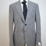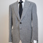 La fantasia combina il classico Principe di Galles con delicate variazioni pied de poule, creando un intreccio di grigio, nero e sfumature beige o marroni che conferiscono profondità e carattere. Un motivo raffinato e senza tempo, reinterpretato con gusto contemporaneo.