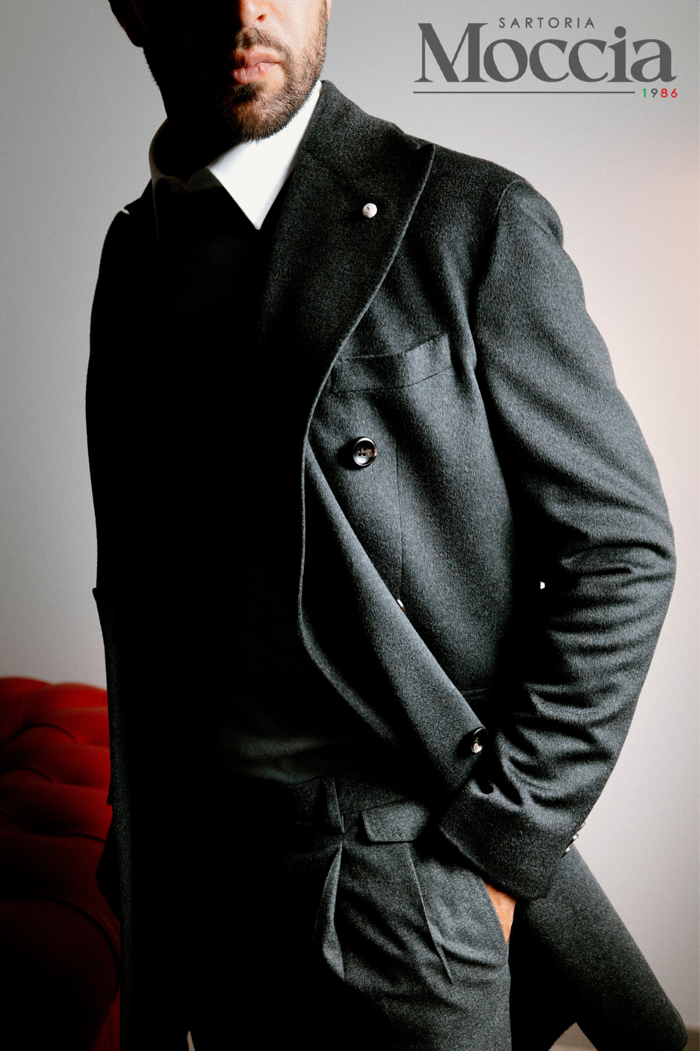 autunno - cappotto - cashmere - coat - grey - grigio - grigio antracite - lana - sartoria italiana - tessuti pregiati